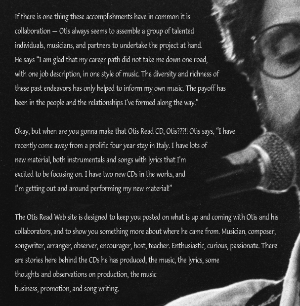 Home        About Otis        CDs        Contact        Bio        Music        Photos        Mailing List